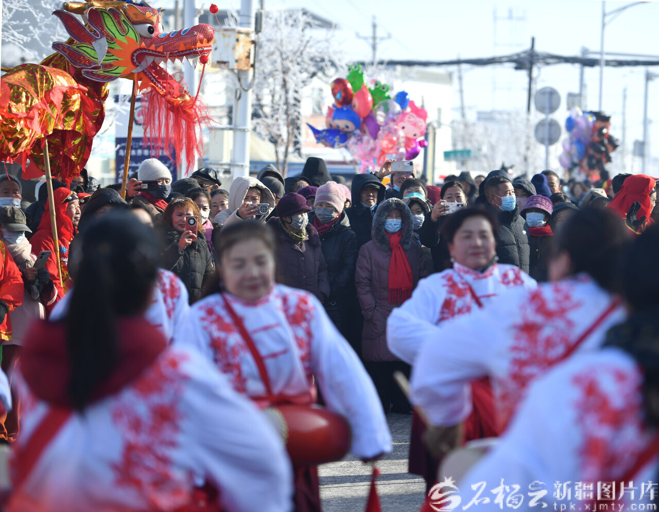 2月9日,村民在乌鲁木齐高新技术产业开发区(新市区)六十户乡六十户东街观看和表演社火(资料图)。天山网-新疆日报记者 汤永摄