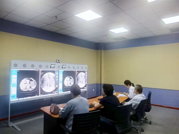 医疗专家正在新疆医科大学第一附属医院昌吉分院肿瘤防治中心进行病症分析。新疆医科大学一附院昌吉分院供图