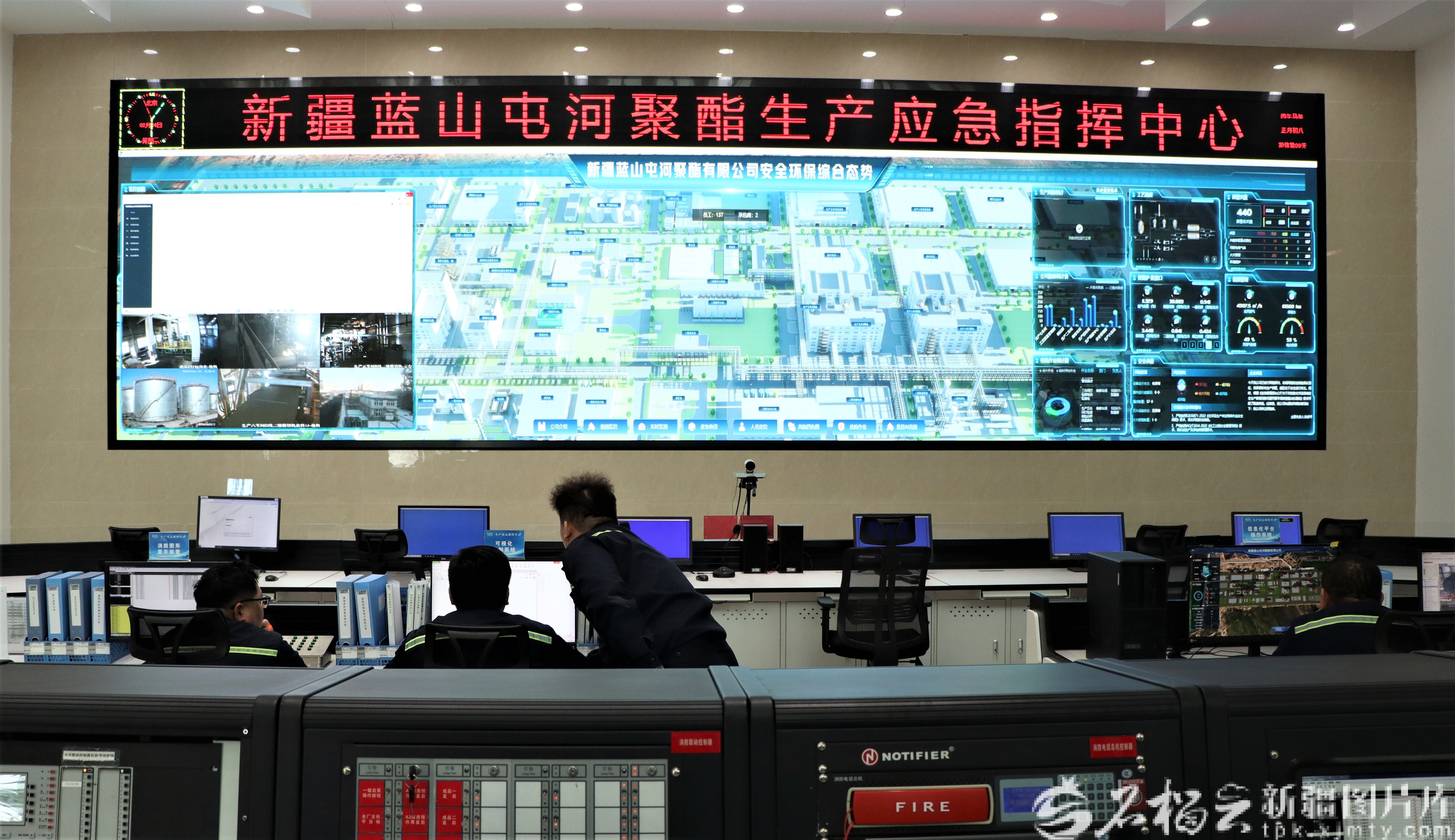 2月24日,在新疆蓝山屯河聚酯有限公司生产应急指挥中心,工作人员在监控生产线运行情况。杨鹤摄