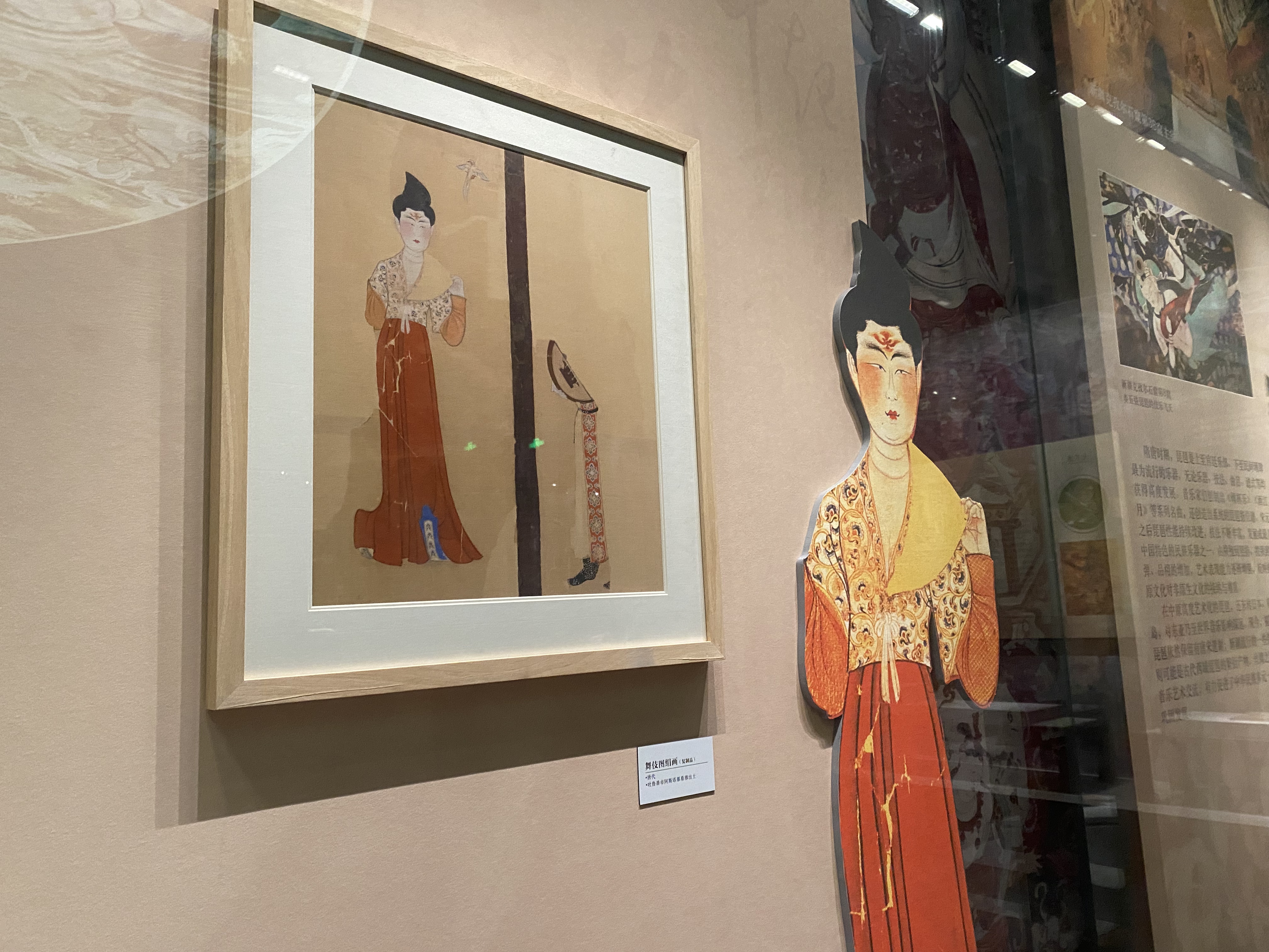 新疆博物馆展示的舞伎图绢画。石榴云/新疆日报记者 赵梅 摄