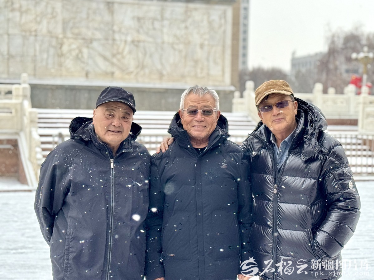 3月1日,乌鲁木齐飘着小雪。张阿姨和姐妹们依旧如约来到人民广场,音响打开,音乐响起,十来个人站成两排,在薄薄的雪上跳起广场舞。雪落在一位阿姨的绒线帽上,很快就被热气融化了。