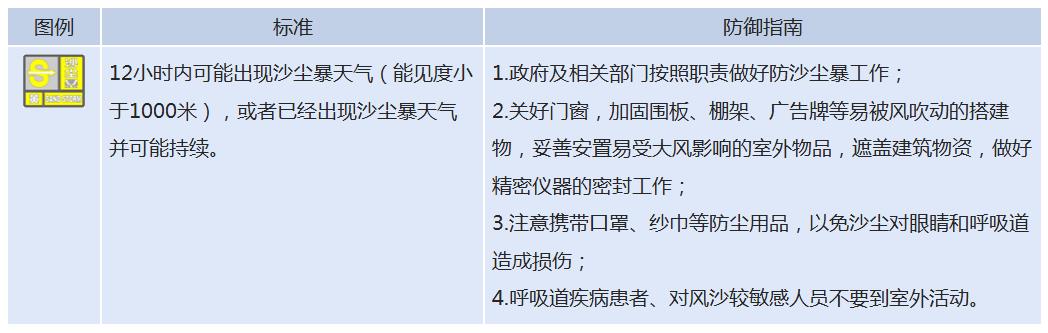 3月10日15时55分,新疆气象台发布沙尘暴黄色预警信号:预计今天夜间至12日夜间,南疆盆地大部和昌吉州东部、吐鲁番市、哈密市等地的部分区域将有扬沙或沙尘暴天气,其中喀什地区、和田地区、阿克苏地区、巴州等地的局部区域有能见度小于500米的强沙尘暴,请加强防范。