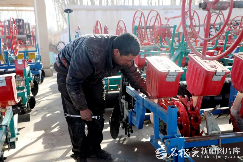 3月初,莎车县拍克其乡农机管理服务站工作人员正在检修农机。莎车县融媒体中心供图