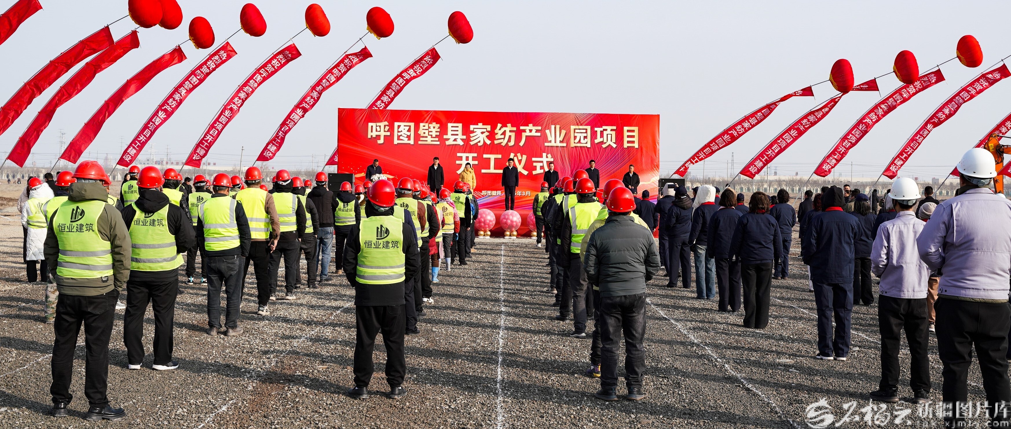 3月10日,呼图壁县家纺产业园项目开工仪式现场。石榴云/新疆日报记者 盖有军摄