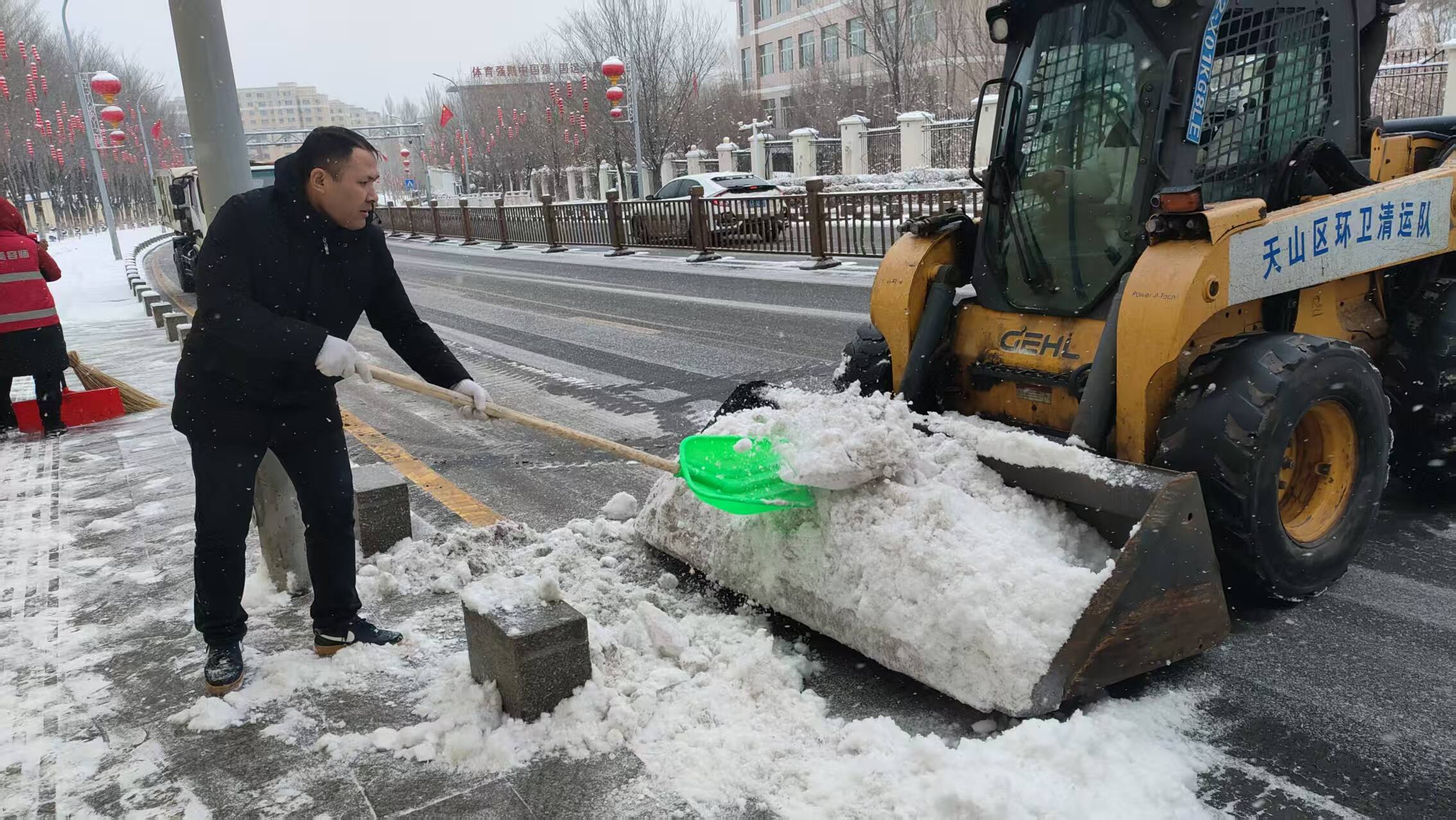 乌鲁木齐市天山区青年路街道红山路南社区党总支迅速组织工作人员开展清雪除冰行动,大家分工协作、默契配合。“下雪天居民出行不方便,得赶紧把路清出来!”工作人员袁红卫擦着额头的汗珠说。经过数小时奋战,原本被积雪覆盖的道路逐渐恢复整洁,大大降低了居民滑倒、摔伤的风险,也为过往车辆通行提供了便利。