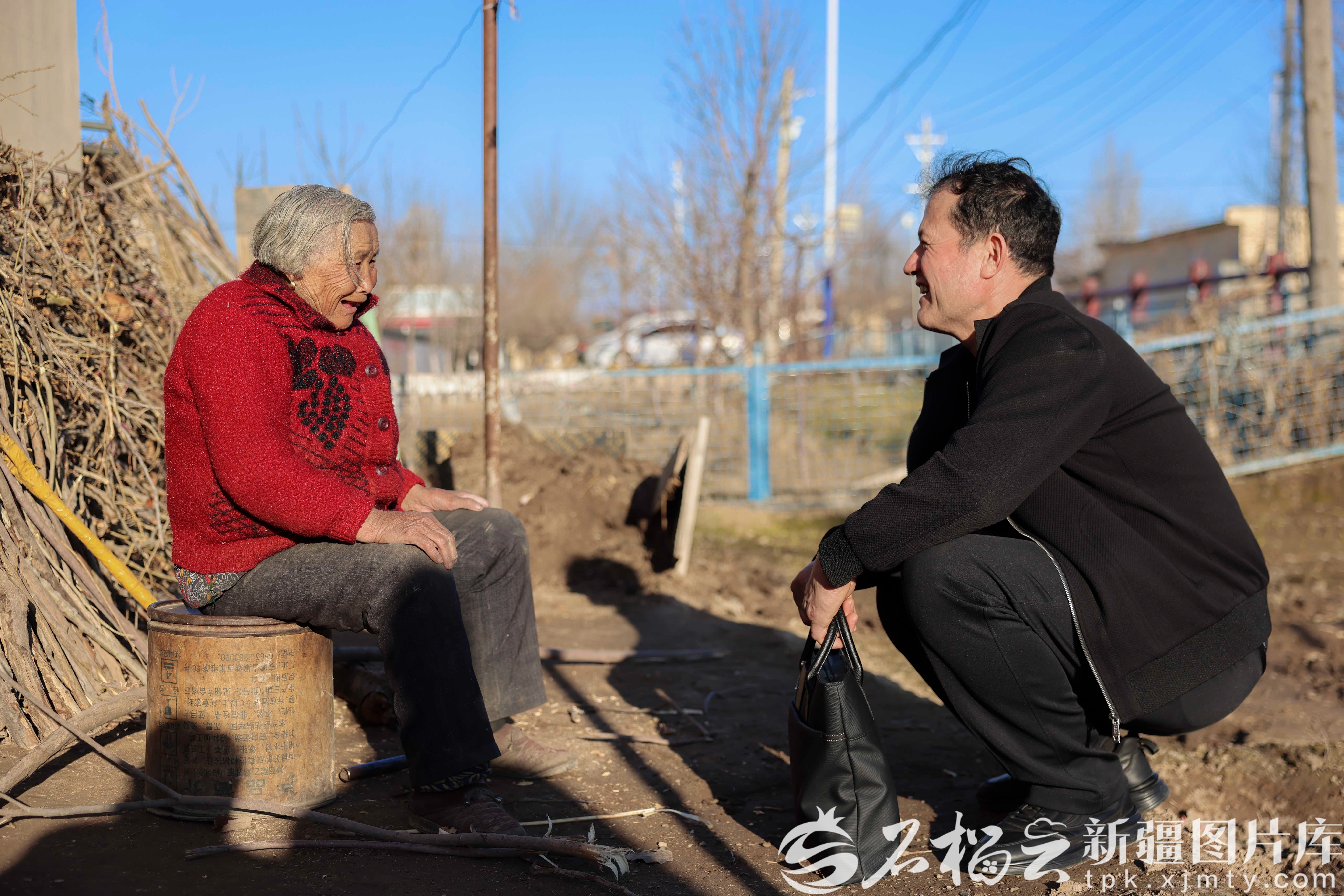 2月17日,全国人大代表吴文秀在走访途中与村民攀谈,并询问生活情况。石榴云/新疆日报记者 韩亮摄