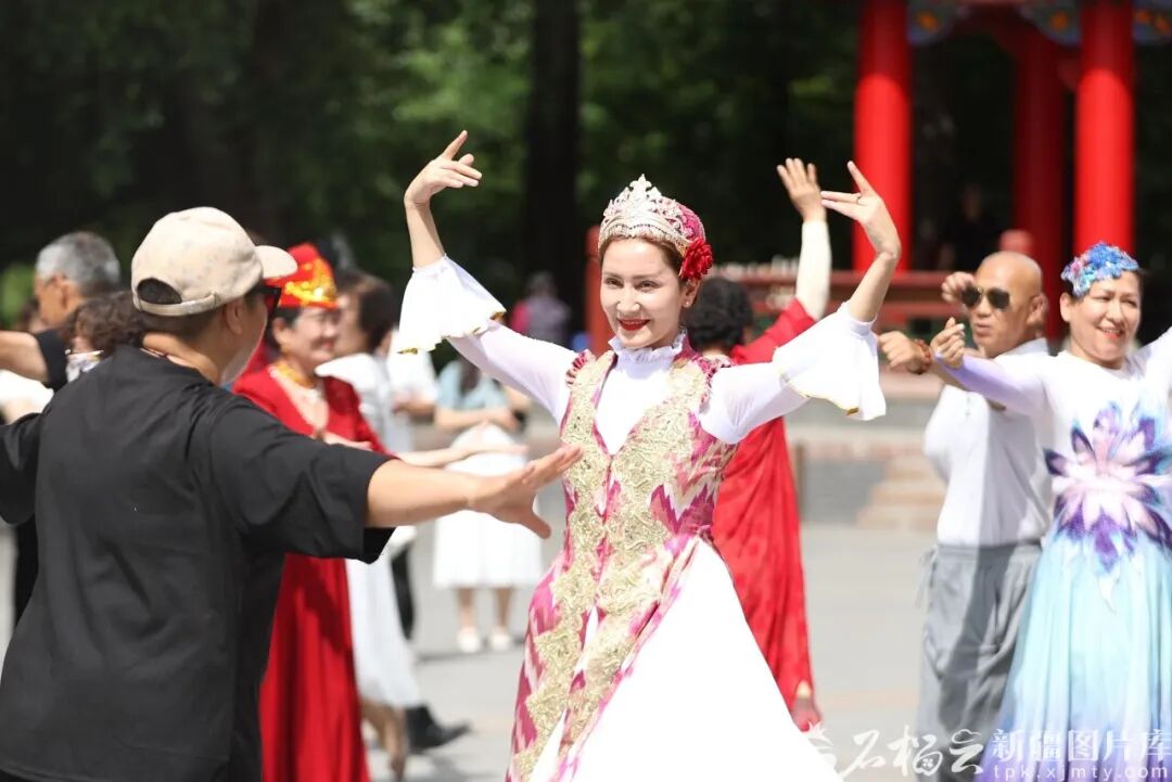 2025年6月5日,各族群众在乌鲁木齐市人民公园,共同欢庆古尔邦节(资料图片)。