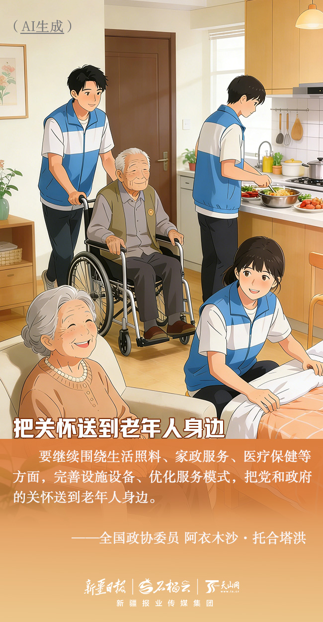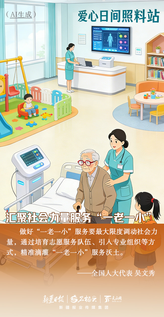 A+ A. A-聚焦“一老一小”,情系千家万户。全国两会上,来自新疆的全国人大代表、全国政协委员聚焦养老与托育等民生热点,用心建言、用情履职,把群众的期盼带到会场。一组AI畅想海报,带你感受他们守护“朝夕美好”背后的履职温度。