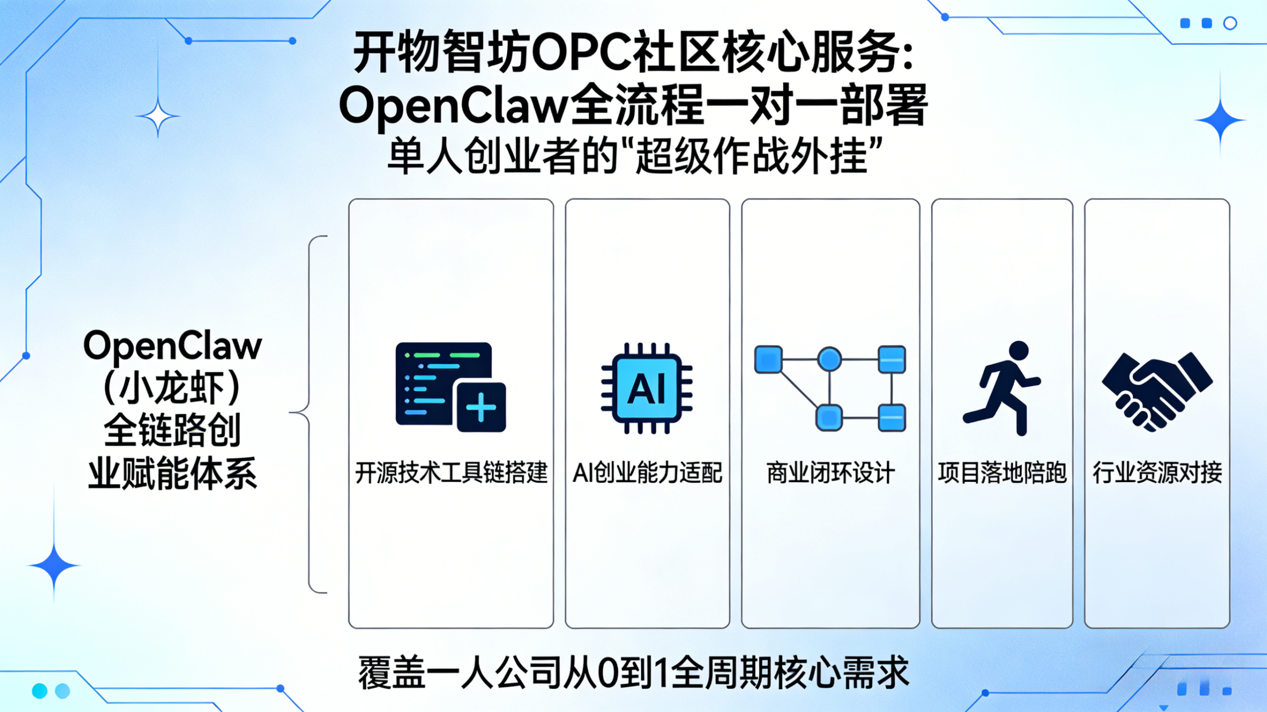他介绍,开物智坊AI+OPC 社区是一个为创业者、微型初创团队、自由职业者量身打造的全维度创业赋能平台。不止是一个办公场地,更是整合了空间、资源、技术、社群、商业对接的创业生态站。该社区正在紧锣密鼓部署中,即将正式亮相。