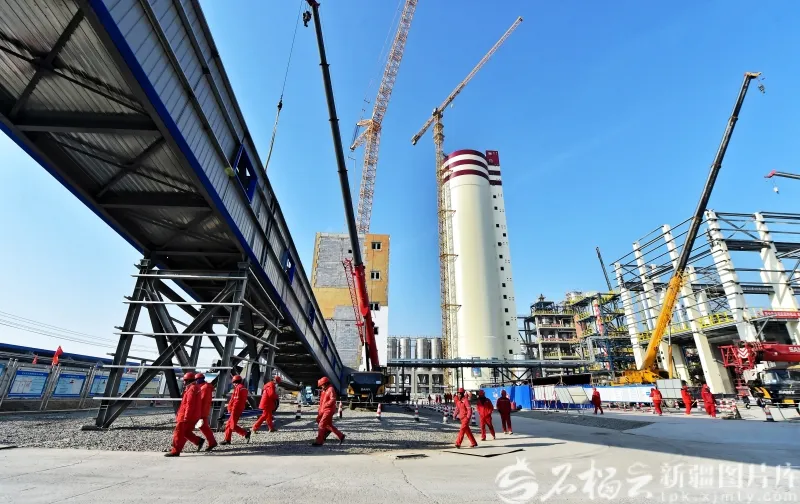 2月19日,独山子石化塔里木大化肥搬迁装置改造项目施工现场。(资料图片)