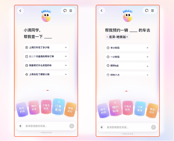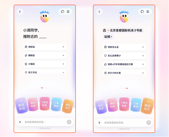 现在,用户将滴滴出行App升级至最新版,点击首页“AI叫车”即可体验小滴,并获得相应的体验激励。