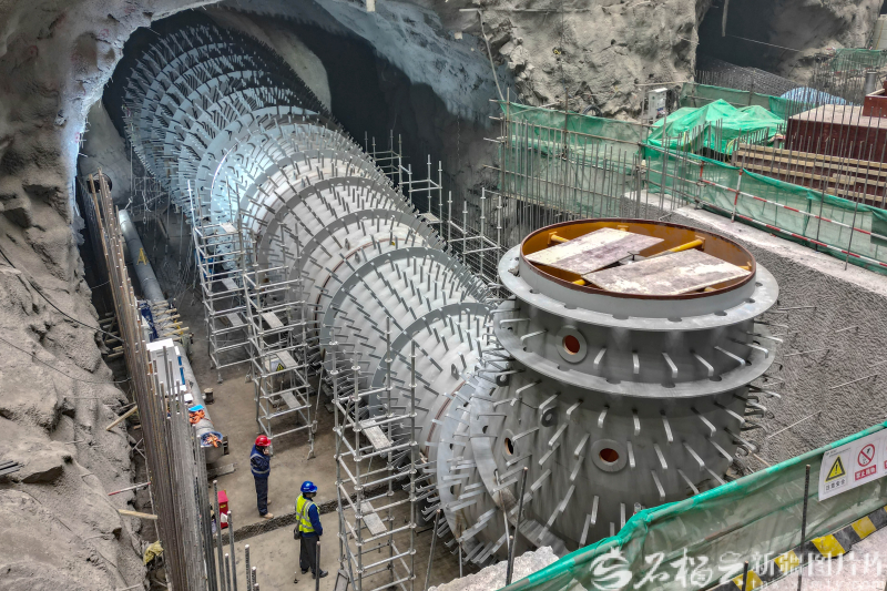 “供水系统工程可谓电站‘生命线’工程,施工难度大、建设标准高。我们所有工点已满负荷运转,全员抢工期、赶进度。”该工程现场负责人张康宁介绍,目前工程供水隧洞掘进超千米,水处理站、二级泵房等关键主体结构顺利封顶,近6公里供水主管道蜿蜒延伸,为电站建成投产奠定基础。