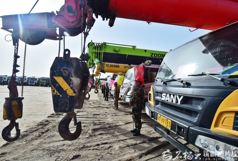 3月16日,库尔勒经济技术开发区一季度重点项目集中开工现场,各种施工机械车辆随时准备投入开工建设。石榴云/新疆日报记者 王立华摄