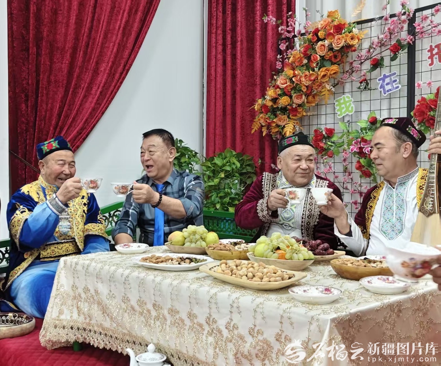 春节期间,在托克逊县文化馆内,各族群众围坐一桌,共品“托克逊极致下午茶”,在茶香与果香中共唱一首歌、共话一家亲,绘就了一幅民族团结、其乐融融的幸福画卷。周萍摄