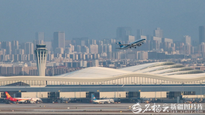 飞机从乌鲁木齐天山国际机场起飞(资料图片)。