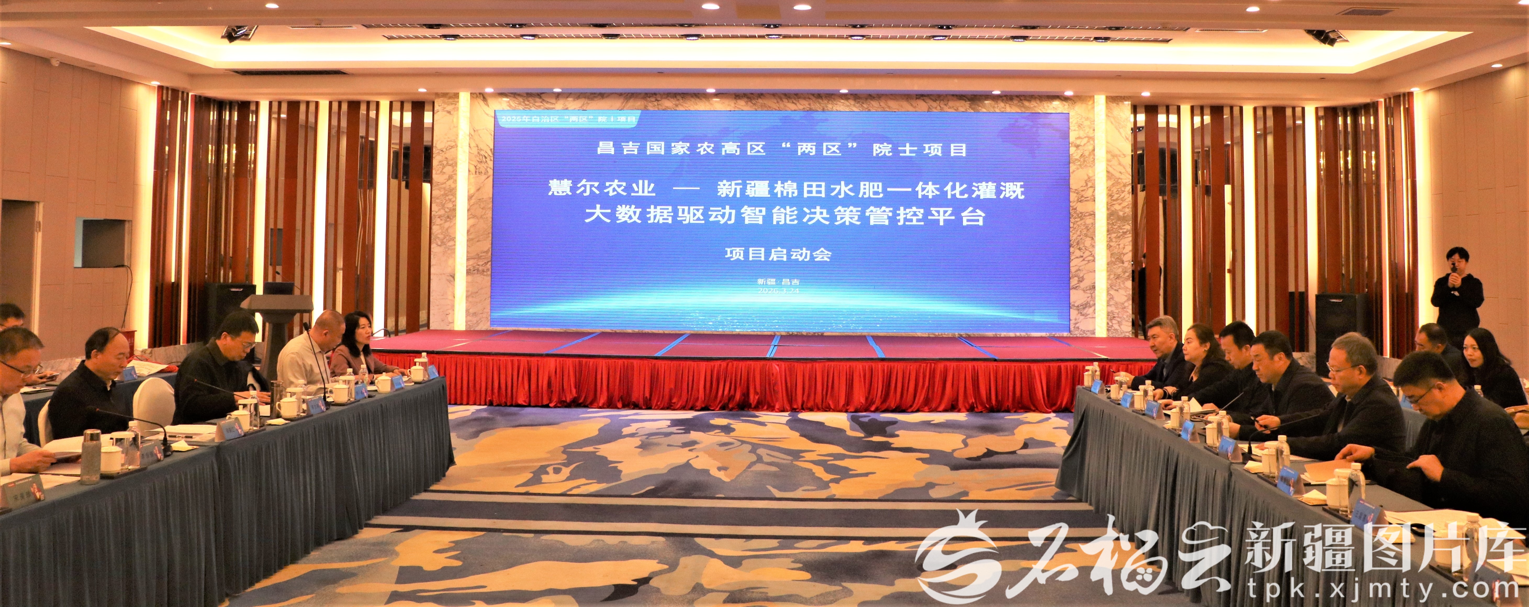 3月24日,新疆棉田水肥一体化灌溉大数据驱动智能决策管控平台项目启动会在昌吉市举行。杨鹤摄