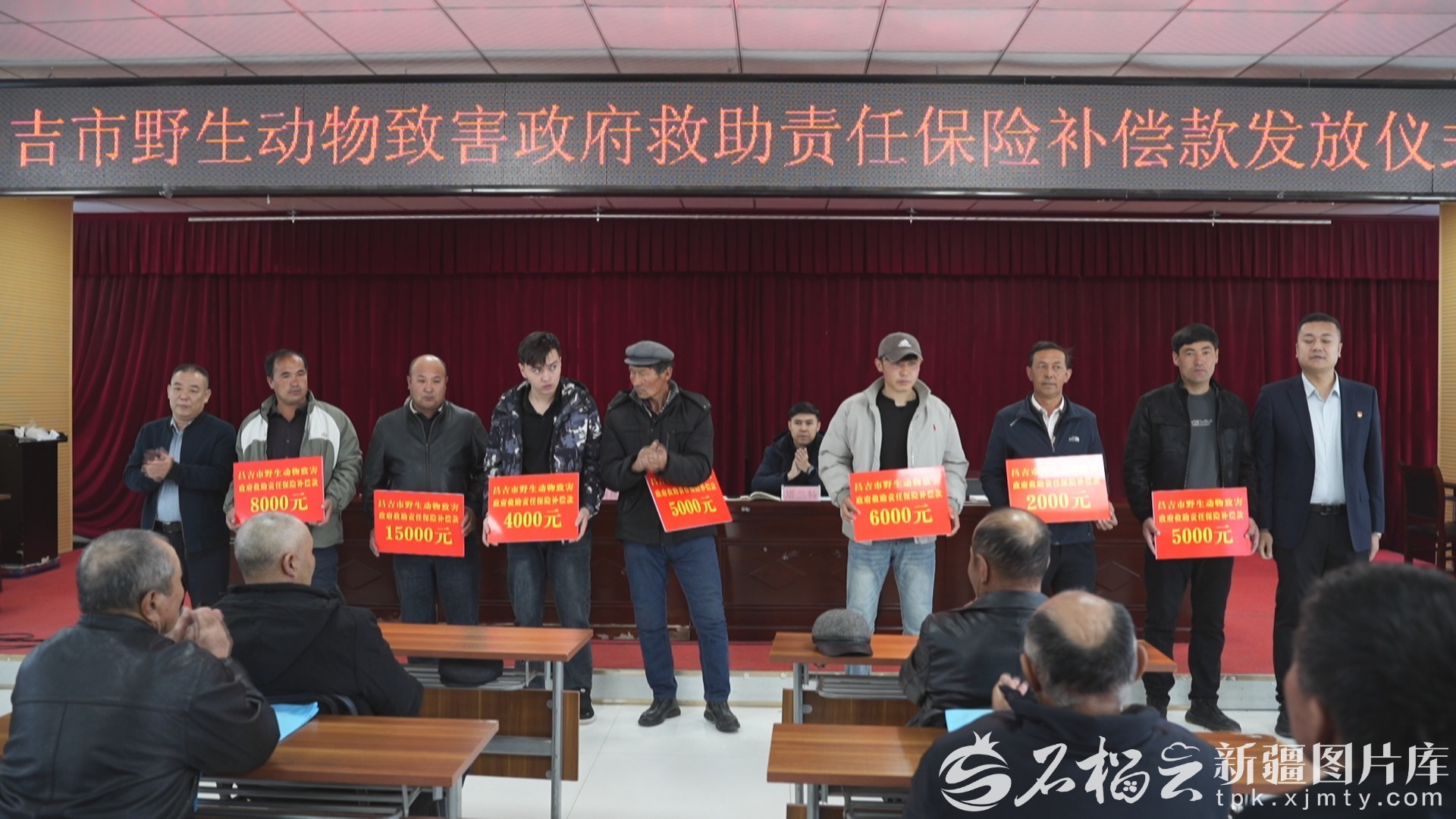 3月23日,昌吉市为首批7位牧民发放野生动物致害保险补偿款。昌吉市融媒体中心供图
