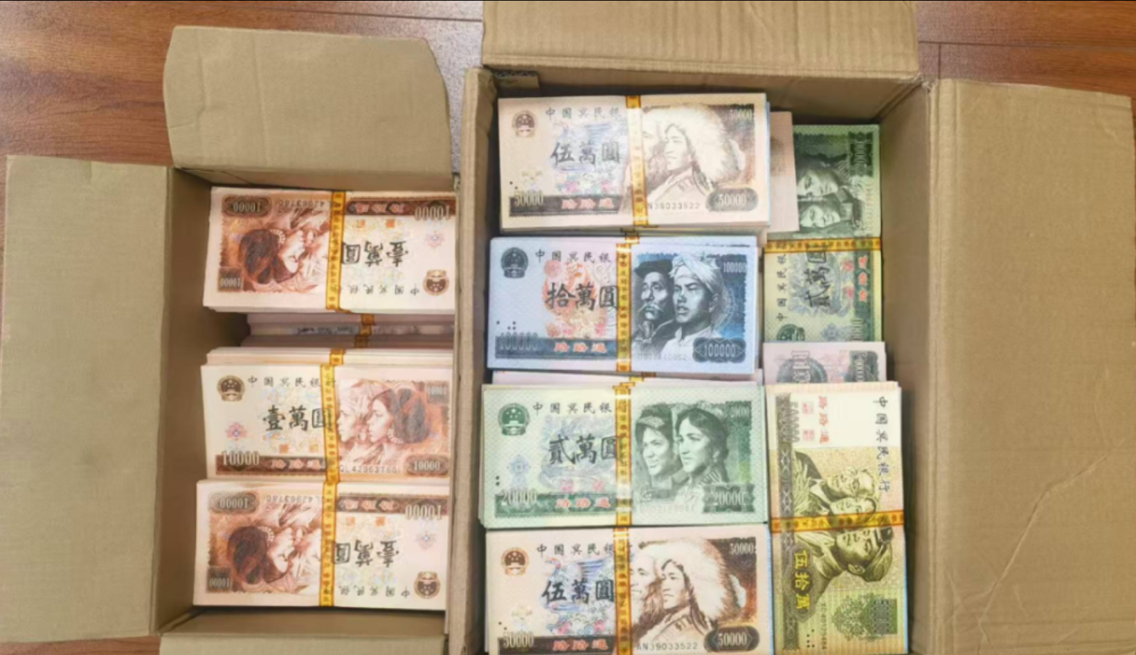 图为中国人民银行等部门公布的非法制售“人民币版”冥币典型案例中的涉案冥币。图片来自中国人民银行微信公众号。