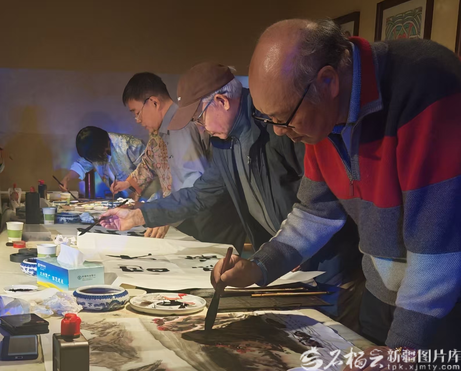4月2日,书画家挥毫作画,并将作品赠送给孤独症儿童康复机构。马龙摄