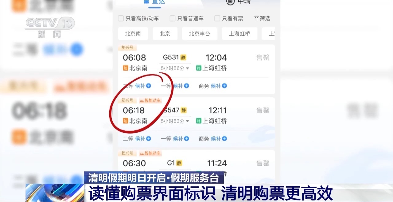 A+ A. A-为期5天的铁路清明假期运输今天启动,这个清明假期,不少旅客在购票的时候会有这样的疑问:铁路12306App购票界面上有时带“复兴号”字样,有时还标了“智能动车组”字样,这些都有什么含义?我们在买票的时候要注意什么呢?