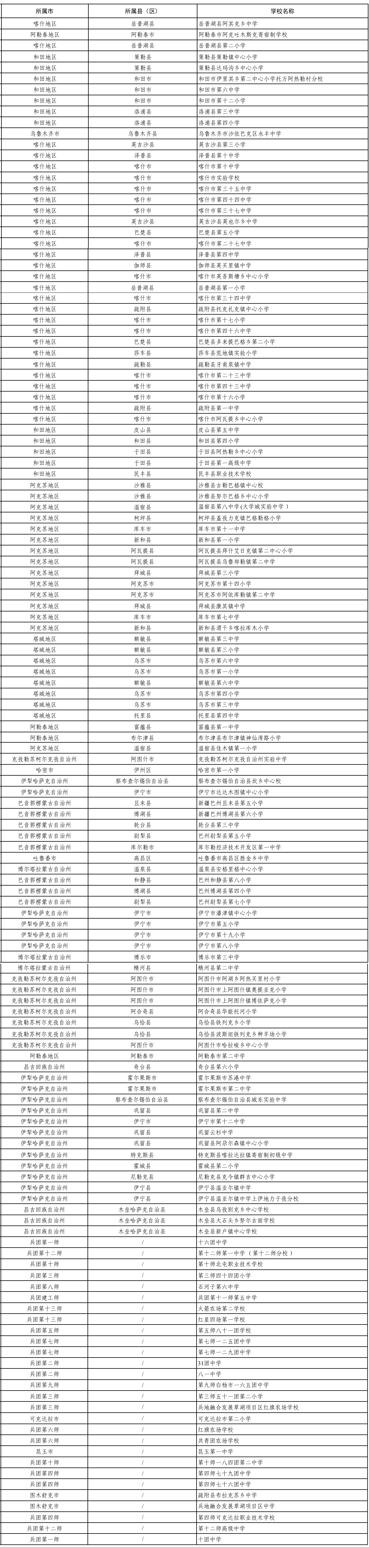 此次新疆(含兵团)入选学校具体名单如下: