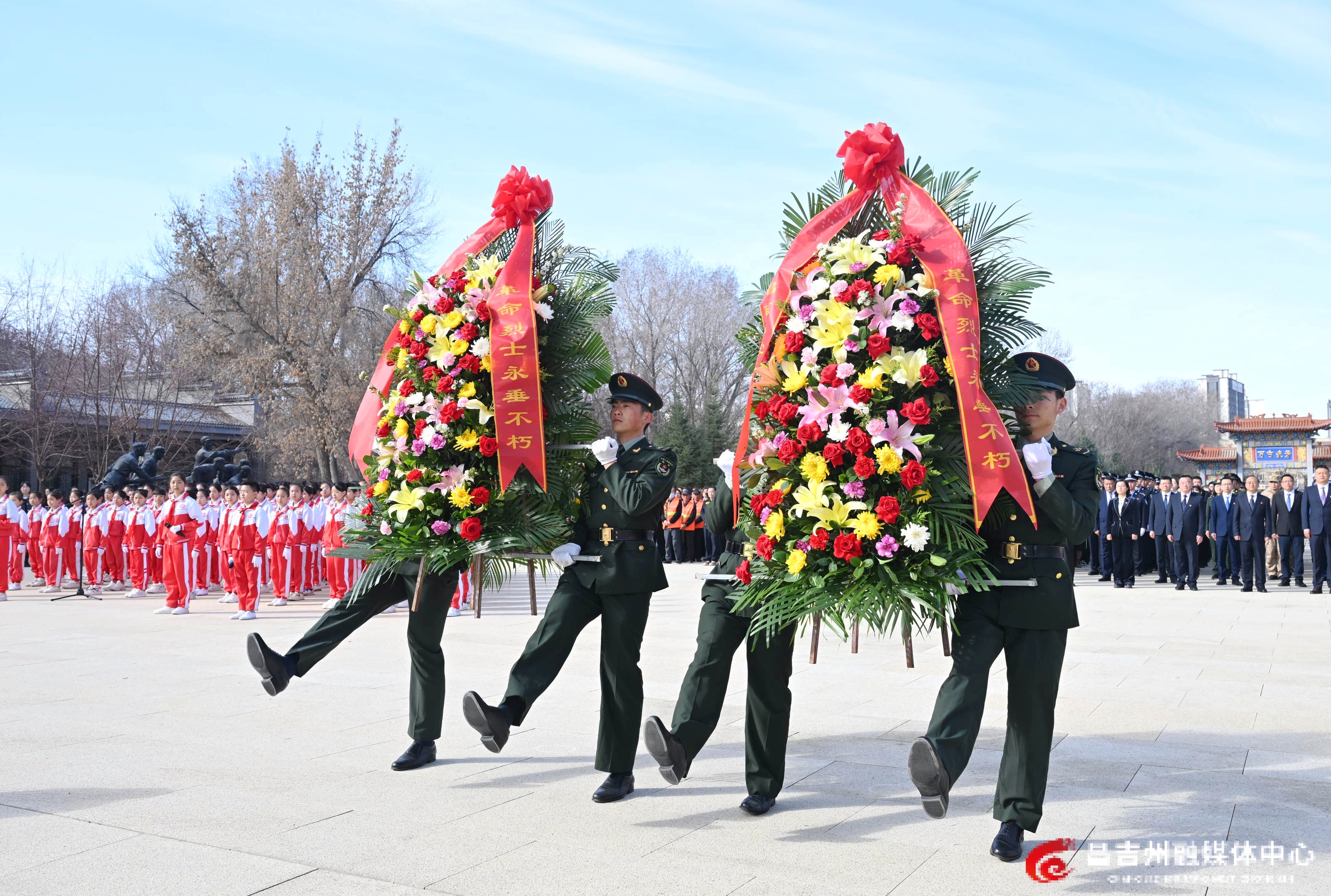 4月1日,昌吉州2026年“缅怀英烈魂·文明追思情”清明节祭奠英烈活动在奇台县烈士陵园举行。