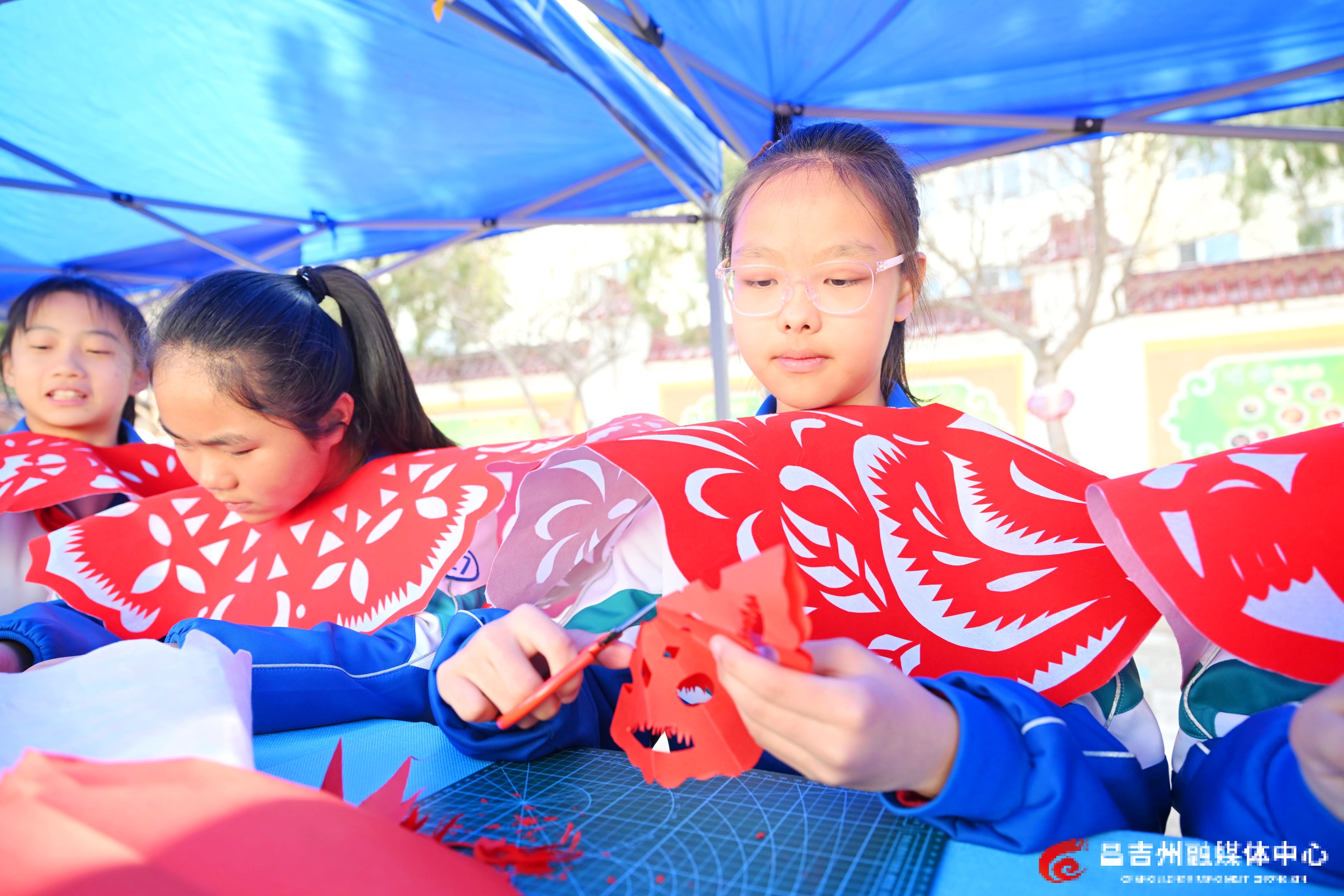 4月1日,昌吉州2026年“风清景明·薪火长传”红色文化教育体验活动在奇台县第四小学举行,同学们在进行剪纸。
