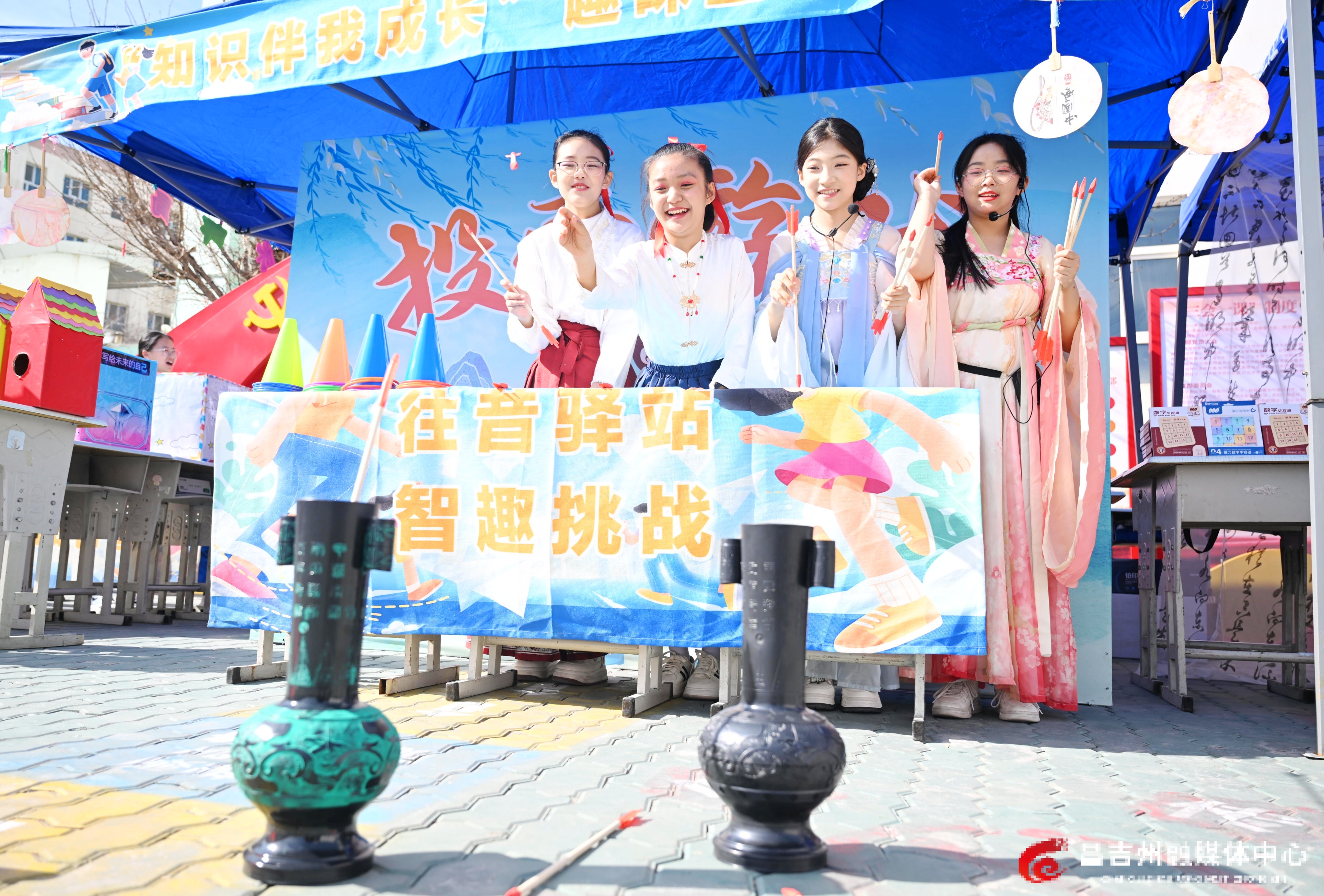 4月1日,昌吉州2026年“风清景明·薪火长传”红色文化教育体验活动在奇台县第四小学举行,同学们在体验投壶。