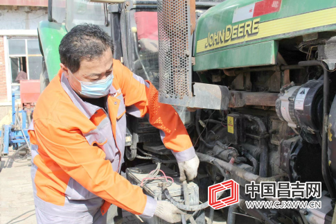 近日,吉木萨尔县二工镇农机站技术人员在全镇15个行政村开展农机具检修工作,对检查中发现的问题现场督促整改,并向村民宣传普及农机具维护维修方面的技术知识和农机安全常识等,为春季农业生产保驾护航。据悉,3月15日至4月5日,吉木萨尔县二工镇已检修保养大小型农机具2200余台。图为4月5日,吉木萨尔县二工镇六户地村农机大户正在检修农机。张德峰 摄