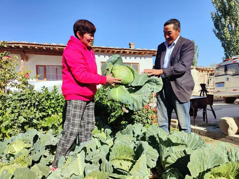 村里都有哪些民族团结故事呢?记者问道,“走,我带你去村里转转,随便进哪家门都能听到民族团结小故事。” 潘竞孔一边儿说着,一边儿带记者来到村民李风英家,正巧赶上她在菜园子里摘莲花白。“帕尔哈提,快来,莲花白长成了,炒着吃香得很!”只见李风英一边儿摘菜一边儿招呼着。她口里的帕尔哈提正是她的邻居。