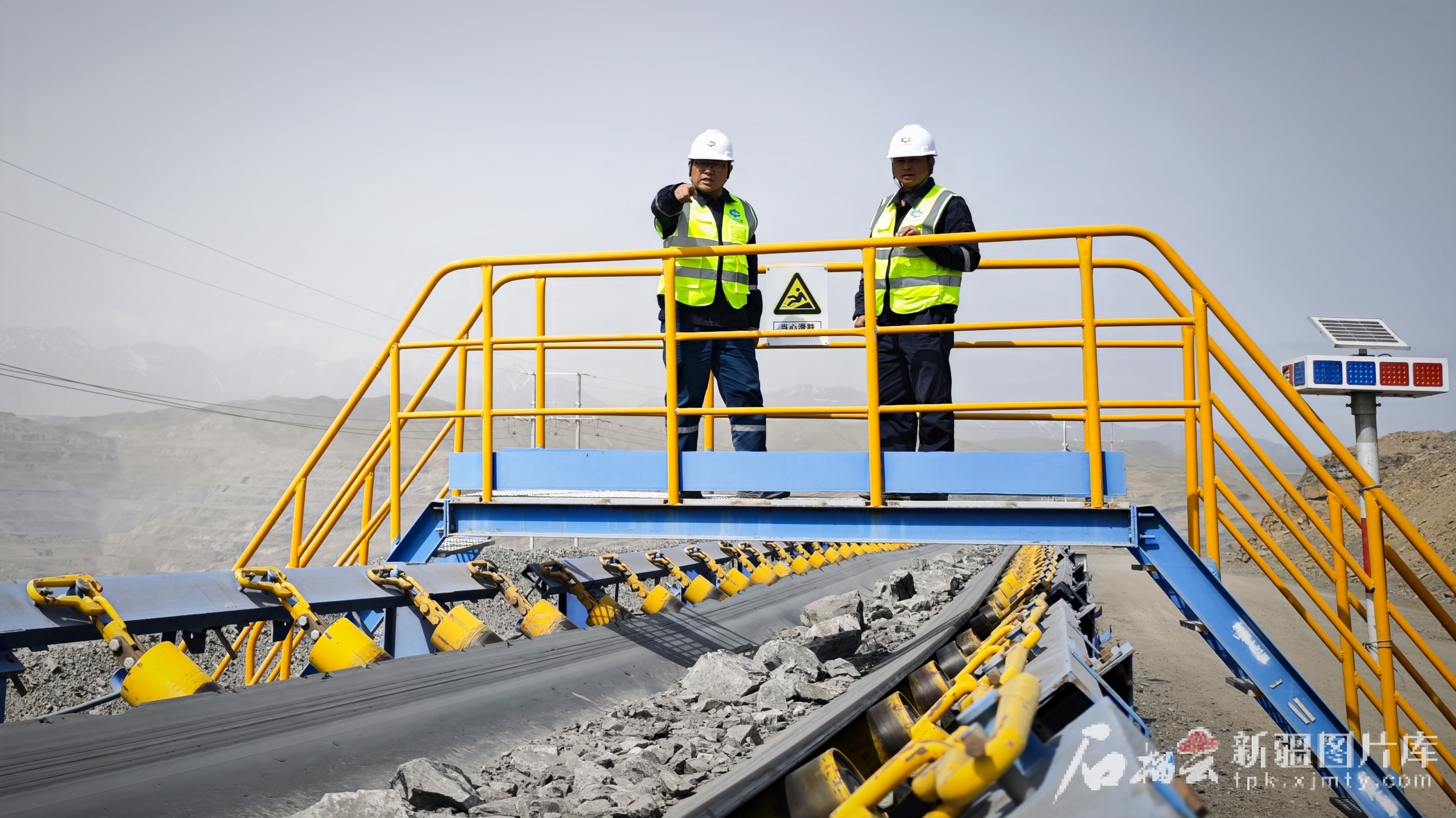 6月3日,工作人员在查看露天煤矿剥离半连续系统皮带运转情况。张一平摄
